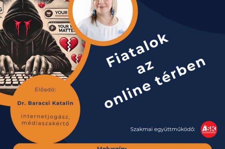 Az első rendhagyó, prevenciós szemléletű könyvtári foglakozás „Fiatalok az online térben” címmel kerül megrendezésre, melyen Dr. Baracsi Katalin internetjogász, médiaszakértő ad átfogó képet az online zaklatás, a digitális agresszió, az adatbiztonság és a jogi következmények kérdésköreiről, érintve a Mesterséges Intelligencia használatának előnyeit és veszélyeit is.
