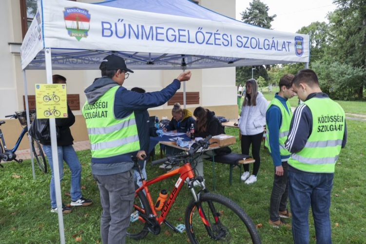 A bűnmegelőzési szakemberek kerékpárok és rollerek regisztrációját végezték el a rendezvény során.