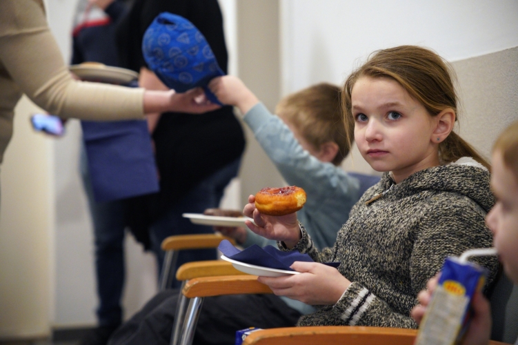 A szülői kíséret miatt csak hétvégi időpont jöhetett szóba, és a fánkokat is a felnőtt hozzátartozók biztosították, de helyi bisztró, hipermarket és egy fagyasztott termékeket szállító cég is támogatta a rendőrségi gyerekzsúrt, és a zsaruk is kitettek magukért.